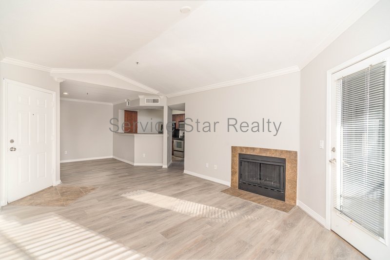 The spacious living room is anchored by a cozy fireplace, creating the perfect spot to unwind after a long day. The kitchen offers rich wood cabinetry, stone-look countertops, stainless steel appliances, and a nearby dining area ideal for everyday meals or entertaining.